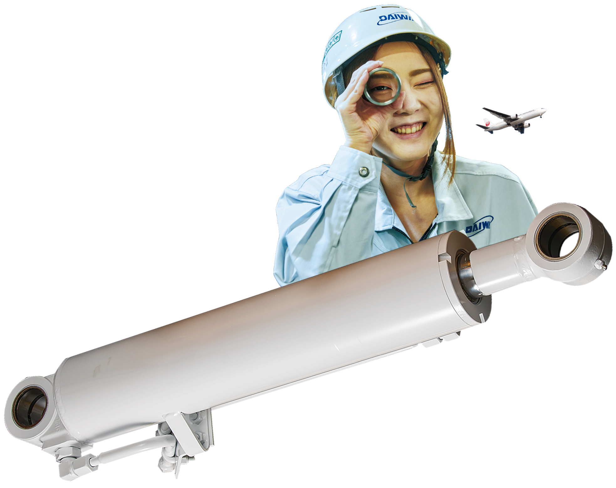 パワーショベルやブルドーザー、航空機、ホイルローダーなどの機械に油圧シリンダは必要不可欠。また建機以外にも、特殊車輌の油圧シリンダも手がけています。