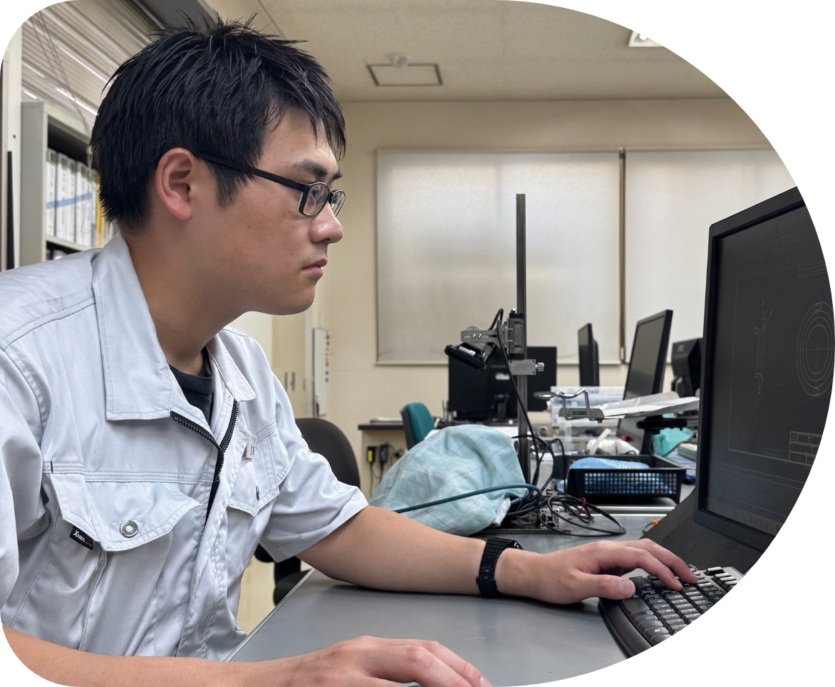 現在は生産技術一課に所属し、新しい生産設備の導入や修理・メンテナンス、作業効率を高めるための治具製作などを担当しています。設備の導入では、加工精度や機能を確認し、最適な機種を選定。導入後の稼働確認まで一貫して関わります。設備に関するあらゆる課題に対応する、いわば“社内の技術コンシェルジュ”のような役割です。