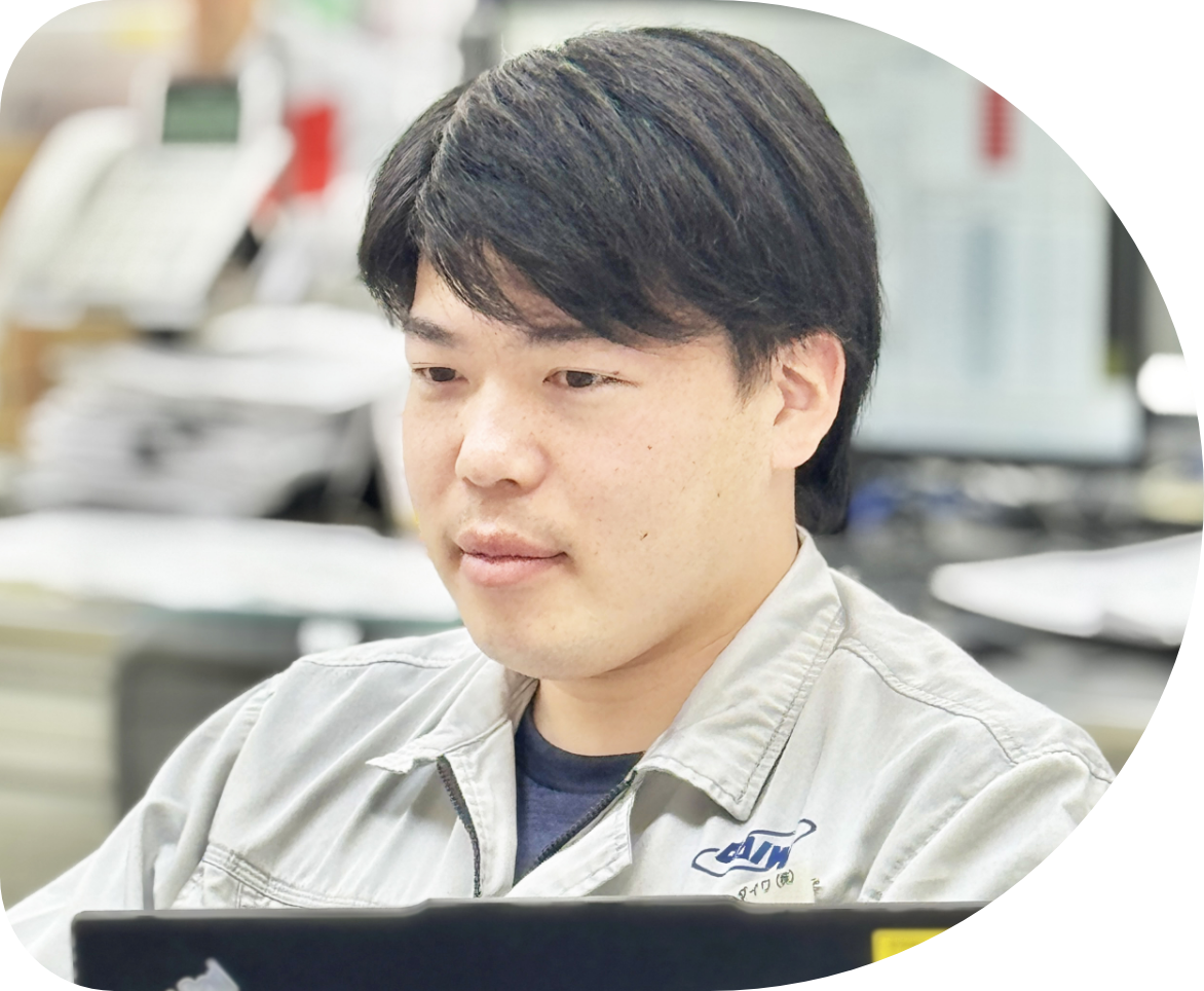 祖父が営む工場で幼いころからものづくりに触れてきたことが、今の仕事の原点です。就職活動の中で当社を選んだ理由は、「社員を大切にする会社」だと感じたからでした。企業訪問で「リーマンショックのときも誰一人リストラせずに乗り越えた」と聞き、人を守る会社の姿勢に強く惹かれました。また、当社の油圧シリンダーが使われた建設機械がカンボジアで地雷除去に貢献していると知り、自分の仕事が社会の役に立つことにも魅力を感じました。